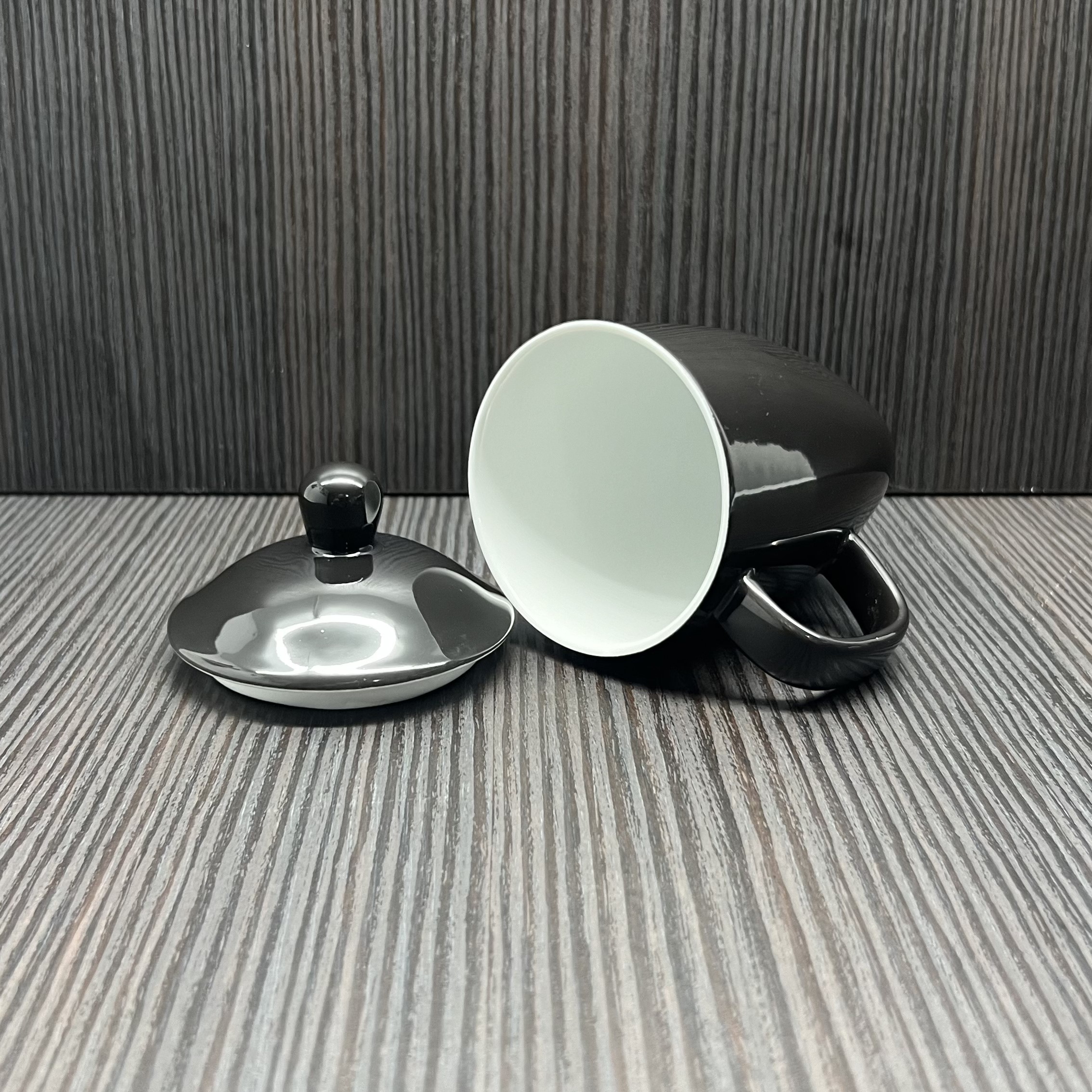 Set Cana cu Capac, Calix 300 ml, Negru
